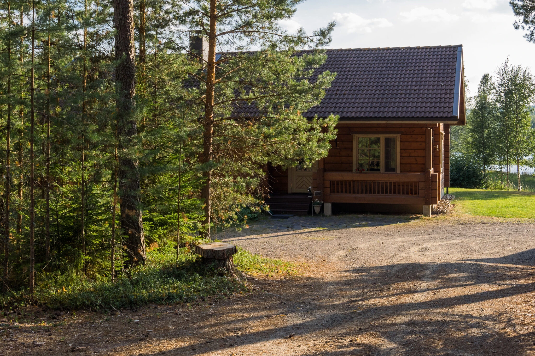 Mökissä on tupakeittiö, kaksi makuuhuonetta (11m²  ja 16m²), joissa yhteensä 5 vuodepaikkaa, sähkösauna, pesuhuone, jossa on 2 suihkua pukuhuone/kodinhoitohuone,  WC, tuulikaappi sekä kaksi tilavaa kuistia. Lisäksi autokatos kahdelle autolle. Mökissä varaava takka sekä hella/leivinuuni. Tuvassa ilmalämpöpumppu. Pihamaa on tasainen, nurmikkoinen sekä  lapsiystävällinen. Pihalla on lapsille keinu sekä hiekkalaatikko. Varastosta löytyy pihapelejä sekä hiekkaleluja lapsille. Petivaatteet viidelle hengelle. Lisämaksusta voit vuokrata liinavaatteet. Rantaan on matkaa noin 50 metriä. Rannalla on soutuvene, grilli ja laituri. Sähköperämoottori ja kanootti vuokrattavana. Aurinkopaneelit. Mökkiin ei saa tuoda lemmikkieläimiä. Mökkiin on mahdollista tilata lisähintaan palju